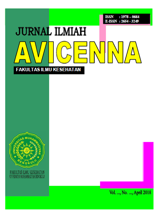 Editor in Chife : Wulan Angraini (Scopus ID: 57204560344) Managing Editor : Emi Kosvianti (Scopus ID: 57218139380) Frequency Publish : 3 per year (April, Agust and December) Publisher : Program Studi Kesehatan Masyarakat, Fakultas Ilmu Kesehatan, Universitas Muhammadiyah Bengkulu Citation Analysis : Google Cendekia, Sinta, Dimensions Jurnal AVICENNA is a journal published by the Public Health Department, Faculty of Health Science, the University of Muhammadiyah Bengkulu since 2006. This journal contains writings that are based on the results of research in the fields of Public Health (nutrition, epidemiology, environmental health, health reproduction, health education, behavior science, administration and health policy, management of health services, and occupational health). This journal is a quarterly (April, August, and December) periodical that considers for publication original articles as per its scope. -