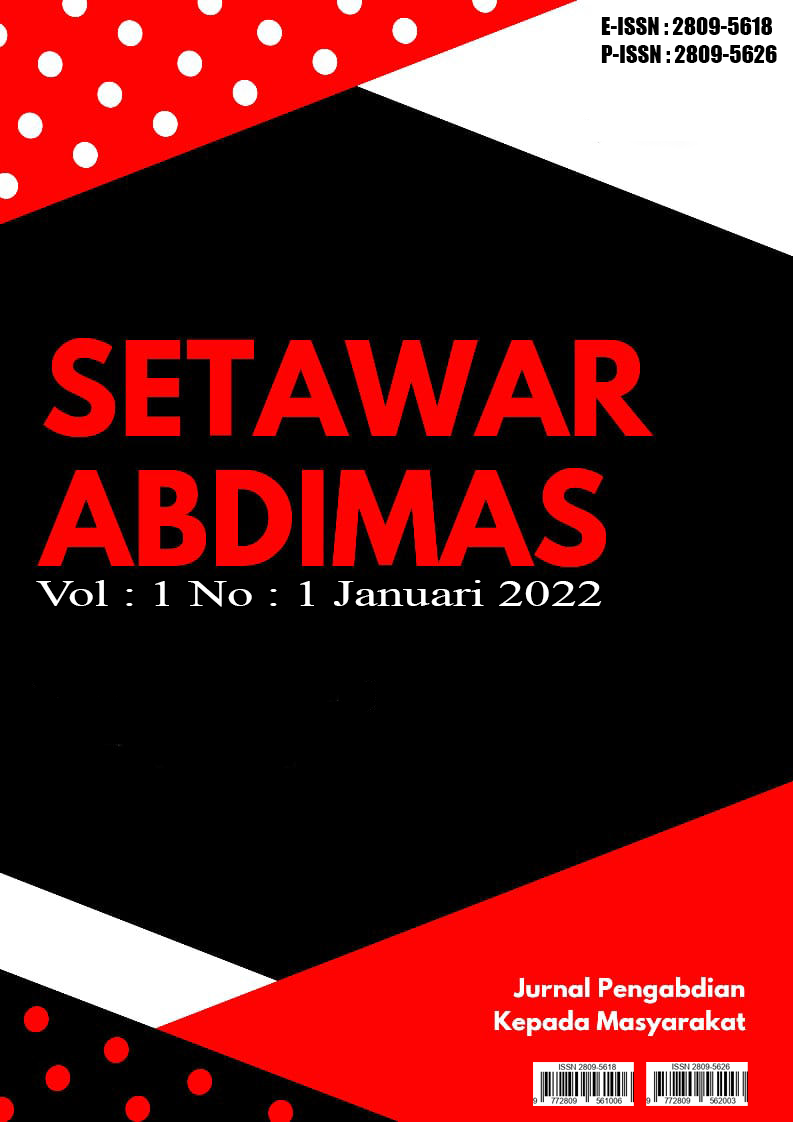 Jurnal Pengabdian Kepada Masyarakat: SETAWAR ABDIMAS, dengan nomor registrasi ISSN 2809-5626 (cetak), ISSN 2809-5618 (online) adalah jurnal ilmiah multidisiplin yang diterbitkan oleh Program Studi Pendidikan Biologi, Fakultas Keguruan dan Ilmu Pendidikan, Universitas Muhammadiyah Bengkulu. Publikasi jurnal ini bertujuan untuk menyebarluaskan pemikiran atau gagasan konseptual dan hasil penelitian yang telah dicapai di bidang pengabdian masyarakat. Jurnal ini merupakan media informasi, komunikasi dan sosialisasi hasil-hasil pengabdian masyarakat bagi Dosen dan Peneliti. Artikel yang dimuat dalam jurnal ini berkaitan dengan hasil-hasil pegabdian kepada masyarakat, ide-ide bersifat interdisipliner atau ide-ide kreatif lainnya yang bersifat konstruktif. Jurnal ini diterbitkan dua kali dalam setahun (Januari dan Juli).
