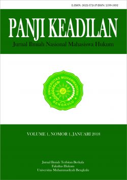 Panji Keadilan Jurnal Ilmiah Nasional Mahasiswa Hukum (PK) is a peer-reviewed law journal published by the Faculty of Law, Universitas Muhammadiyah Bengkulu. PK publishes its articles annually every January and June. The articles published by PK are scientific articles that explain a research result and analytical review in the field of law.