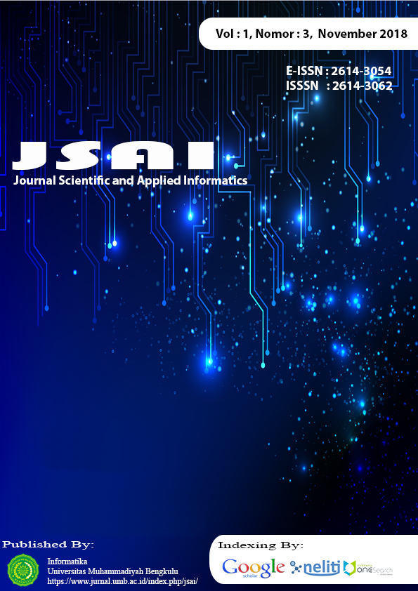Vol. 1 No. 3 (2018)Pada Volume ini issue yang akan dibahas yaitu tentang ilmu penerapan metode ataupun alogritma beserta pengembangan dalam sistem informasi -