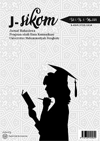 Vol 6 No 2 (2025)Jurnal Sarjana Ilmu Komunikasi (J-SIKOM) Volume 6 Nomor 2, Oktober 2025, merupakan edisi terbaru yang diterbitkan oleh Program Studi Ilmu Komunikasi, Fakultas Ilmu Sosial dan Ilmu Politik, Universitas Muhammadiyah Bengkulu. Edisi ini memuat karya ilmiah dari berbagai perguruan tinggi di Indonesia, seperti Universitas Muhammadiyah Bengkulu, Universitas Mercu Buana Yogyakarta, Universitas Pendidikan Nasional, Universitas Yudharta Pasuruan, Universitas Bina Sarana Informatika, Universitas Islam Negeri Sunan Ampel Surabaya, Sekolah Vokasi IPB University, Universitas Malikussaleh, Universitas Muhammadiyah Karanganyar, Universitas Riau dan Universitas lainnya. Kolaborasi lintas institusi ini menunjukkan semangat akademik yang kuat dalam memperkaya kajian komunikasi melalui perspektif yang beragam, baik secara teoretis maupun metodologis.